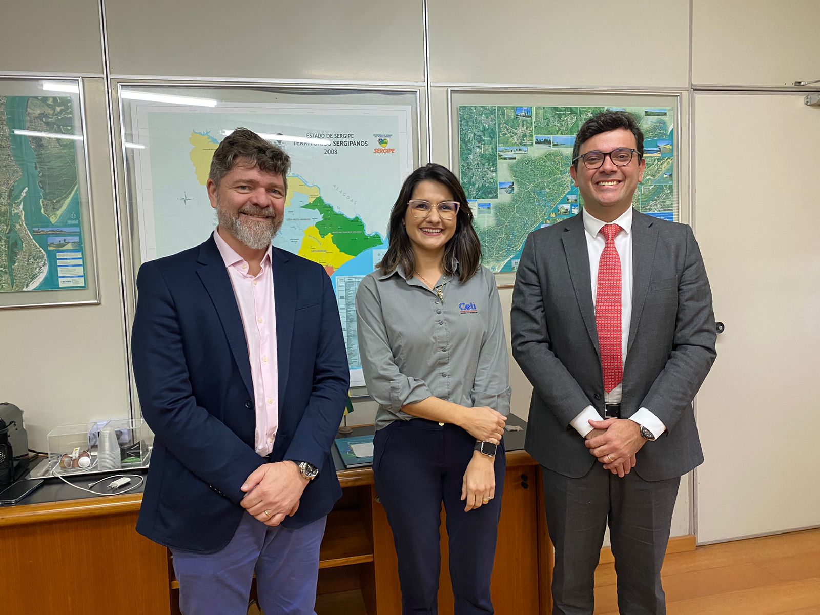 Na manhã da última quinta-feira, 17, o presidente da Empresa Sergipana de Tecnologia da Informação e Comunicação (Emgetis), João Pereira, recebeu em seu gabinete a diretora jurídica da Construtora Celi, a Dra. Aline Feitosa, e o advogado Dr. Pedro Celestino, que buscaram a Emgetis para uma avaliação especializada dos equipamentos tecnológicos de segurança que serão instalados em um bairro ainda em construção.