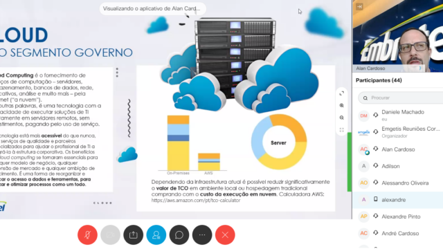 Para iniciar os trabalhos, o gerente de desenvolvimento de negócio na Embratel, Alan Cardoso, fez uma breve apresentação dos temas a serem desenvolvidos, e explanou sobre a experiência da empresa com o governo federal na contratação de multinuvem. Em seguida, o gerente de portfólio de produtos em nuvem da Ustore, Eric Esquivel, falou sobre ‘Governança e controle financeiro da nuvem’.